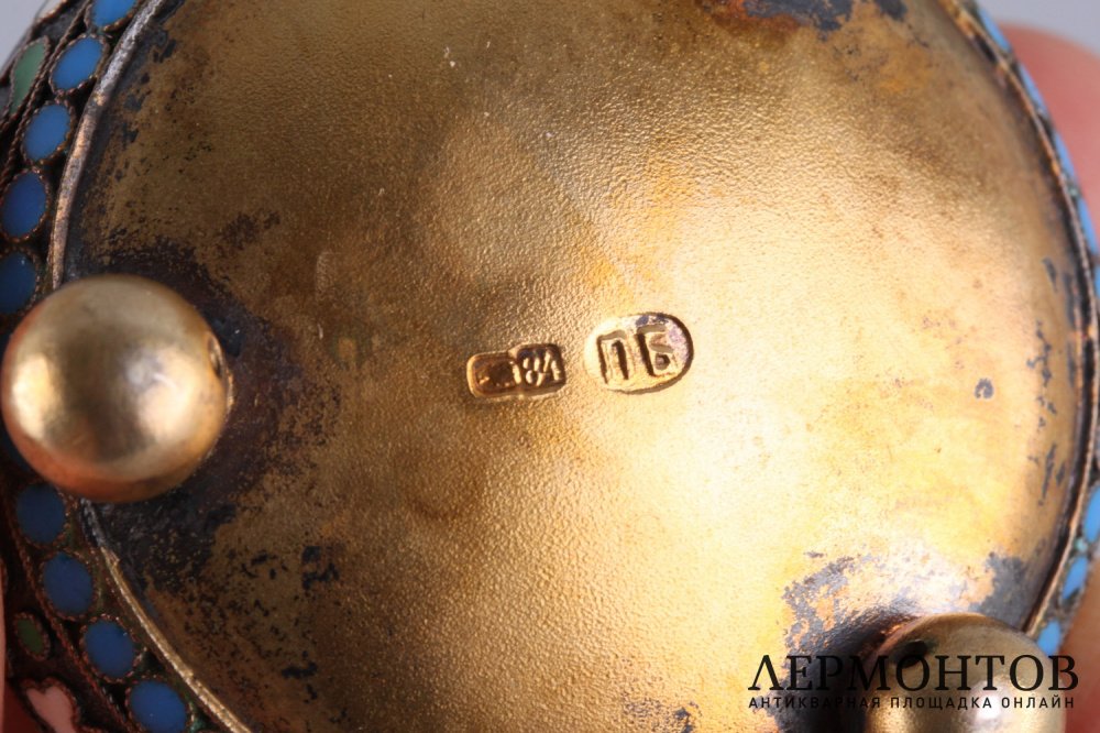 Клейма: пробирное клеймо Москвы с цифровым обозначением пробы "84"; именник мастерской "ПБ".