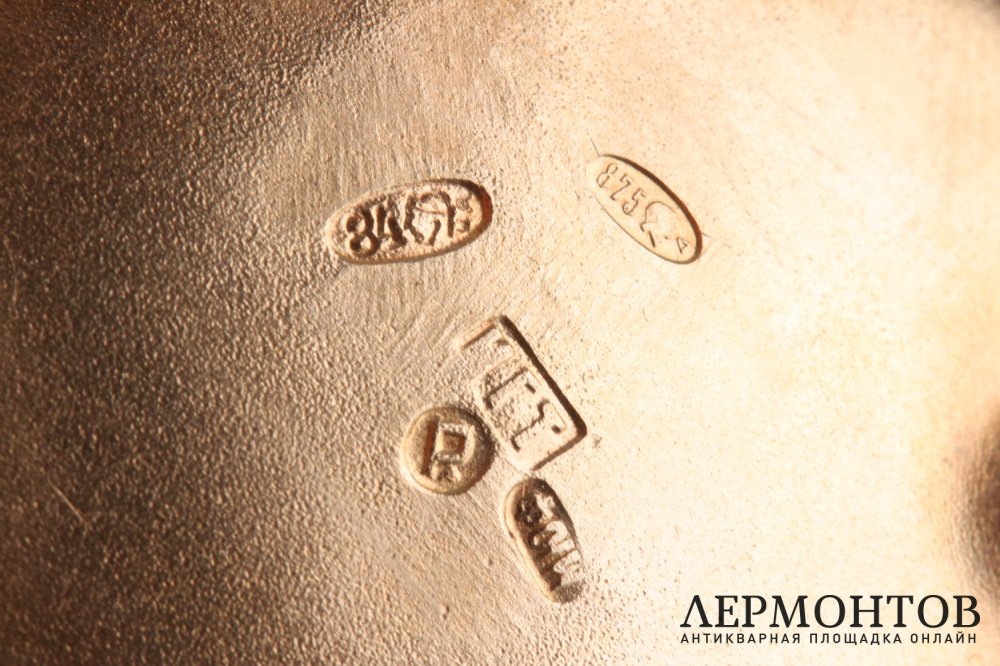 Клейма: пробирное клеймо Москвы с цифровым обозначением пробы "84"; именник мастерской "ИГТ".